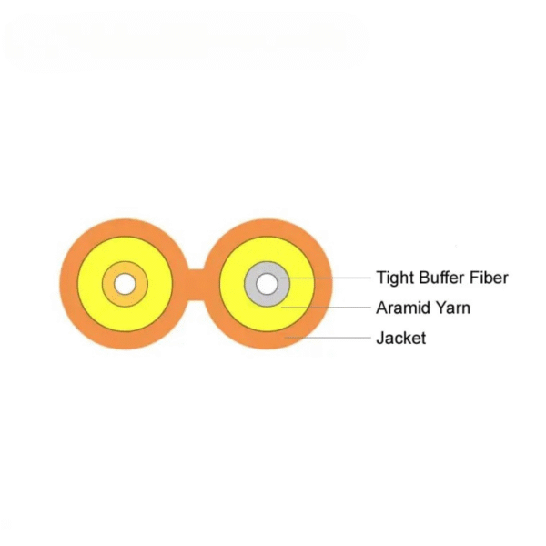 • 900µm tight buffer fiber, aramid yarn, flame-retardant jacket